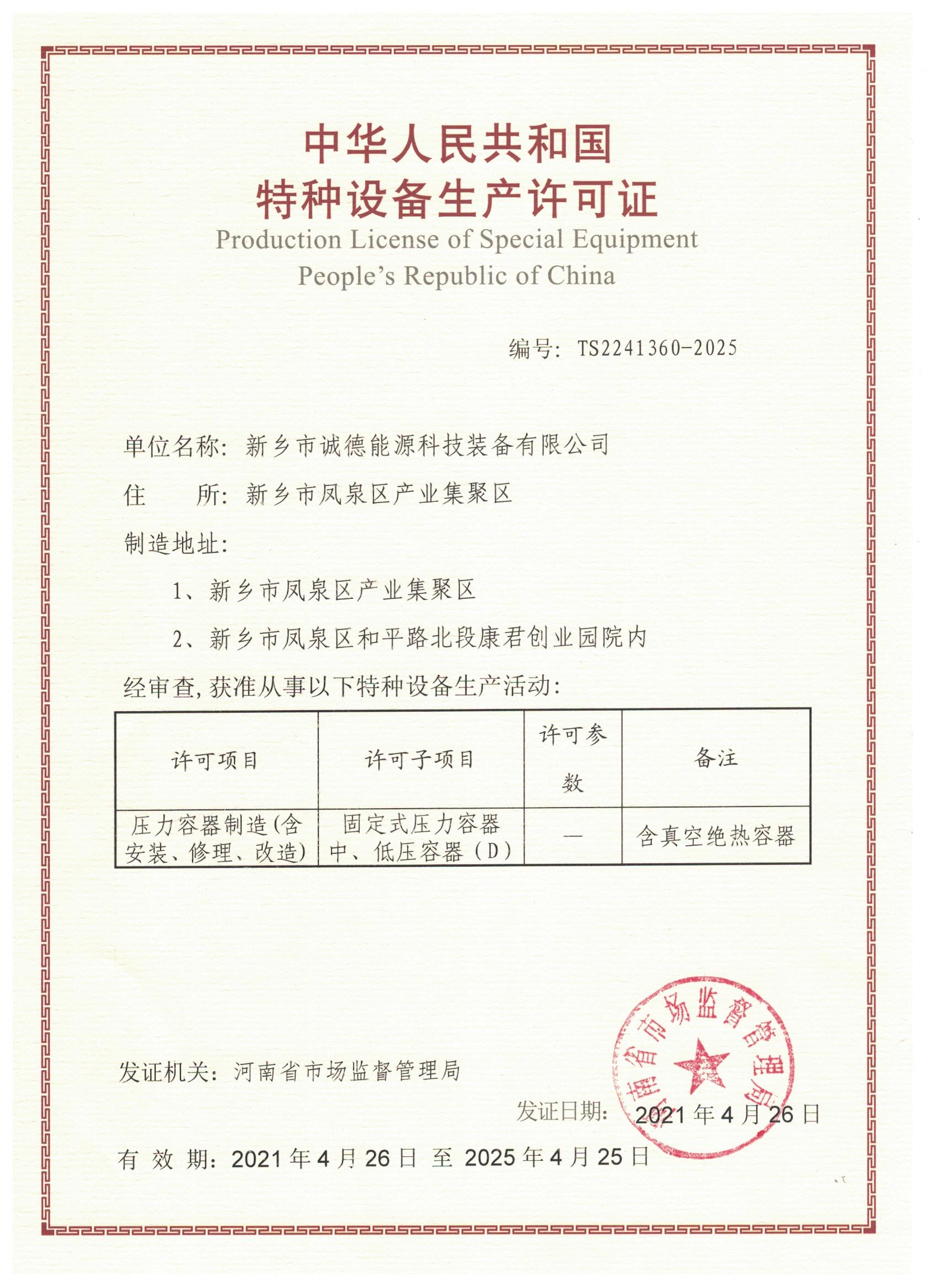 about chengde新鄉(xiāng)市誠德能源科技裝備有限公司(簡稱:新鄉(xiāng)誠德)成立于2002年,是一家致力于壓力容器、低溫深冷設(shè)備、氣體設(shè)備、船用產(chǎn)品、專用車領(lǐng)域研發(fā)、設(shè)計、制造、安裝、服務(wù)為一體的科技型企業(yè)。是河南省民營企業(yè)、河南省質(zhì)量誠信體系建設(shè) AAA 級企業(yè)、河南省“專精特新”中小企業(yè)、國家企業(yè)。