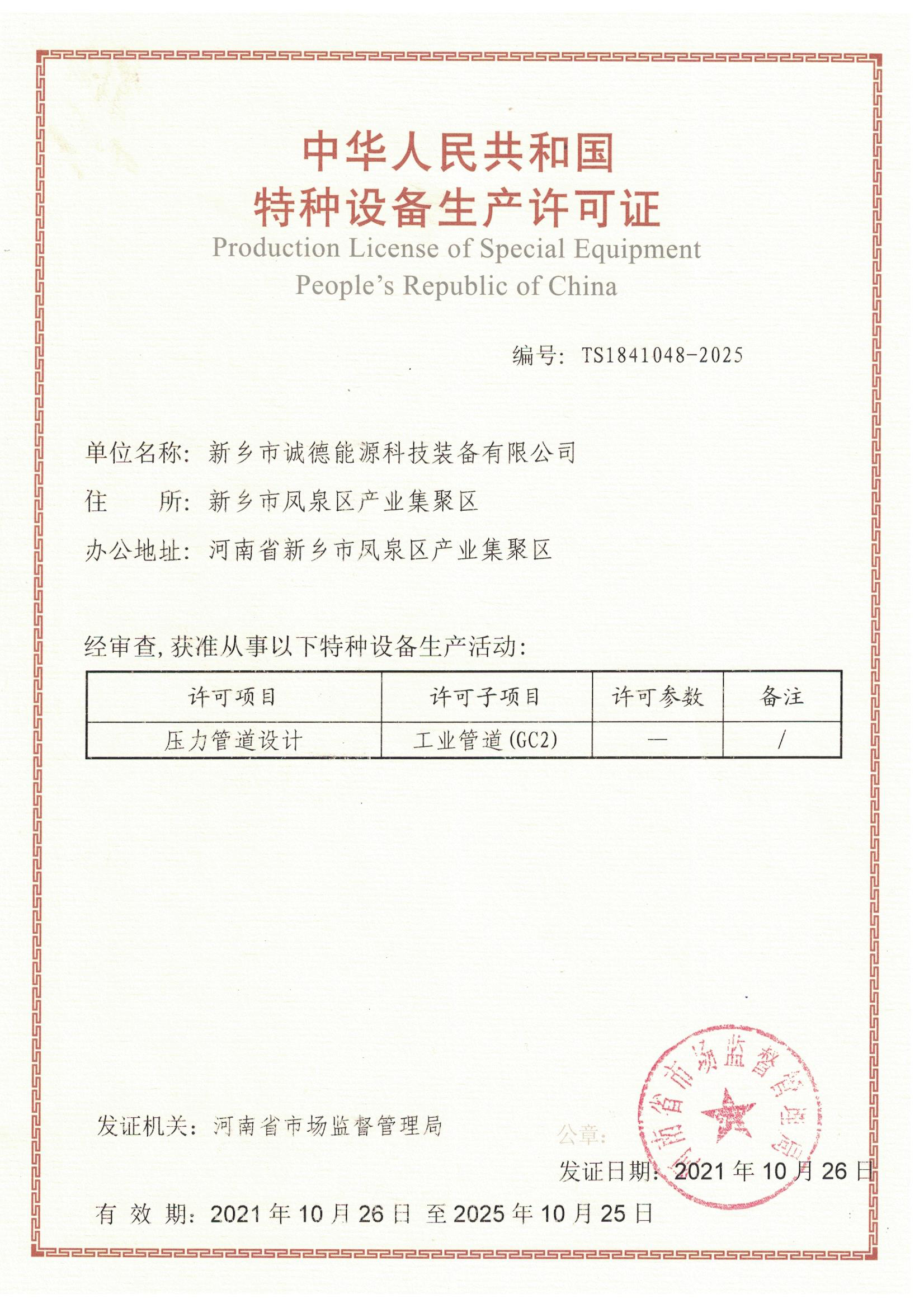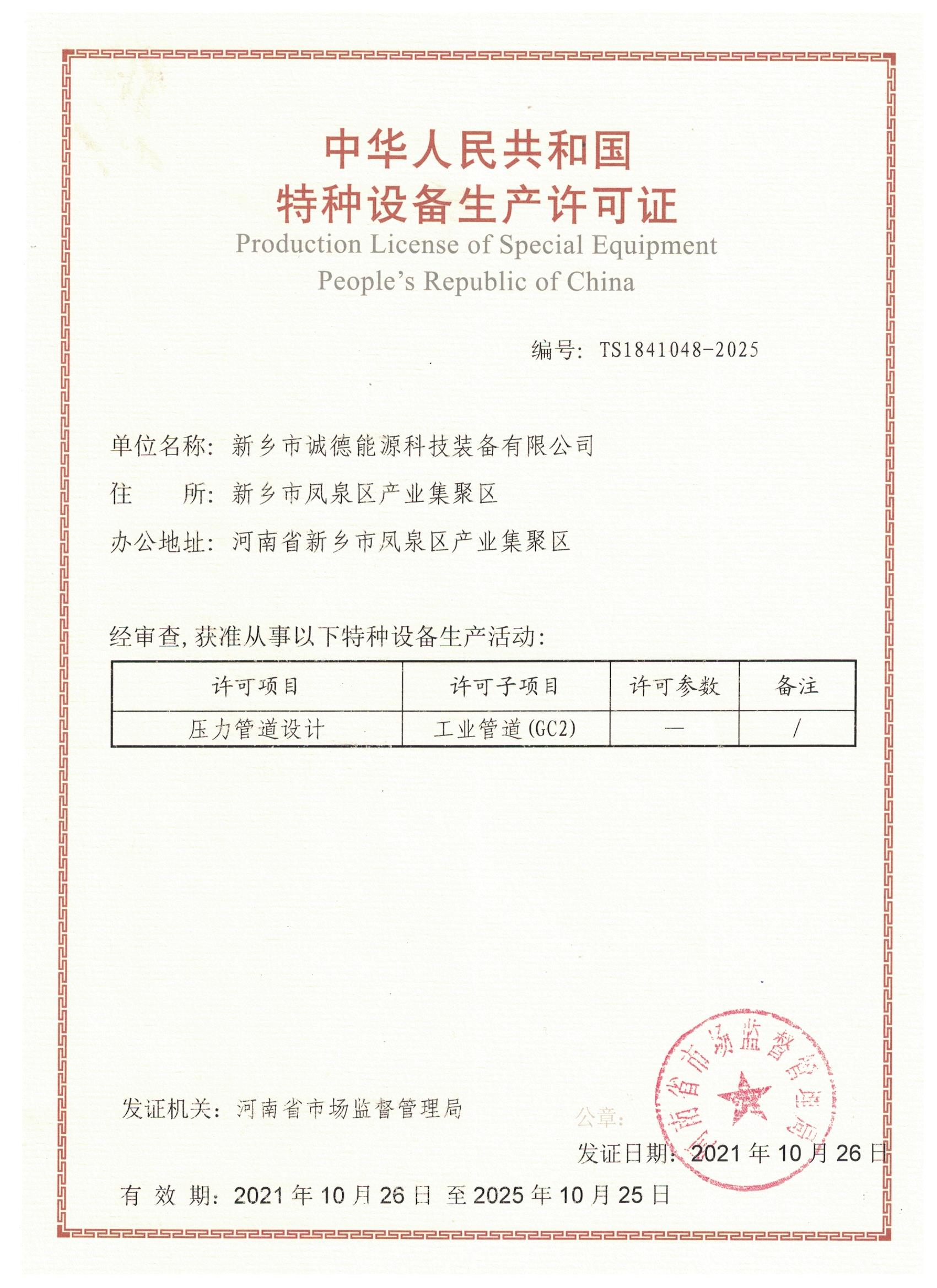 GC2 壓力管道設(shè)計(jì)資質(zhì)
