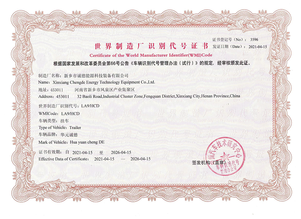 世界制造廠識別代號證書