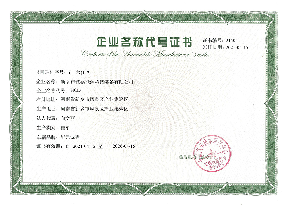 企業(yè)名稱代號證書