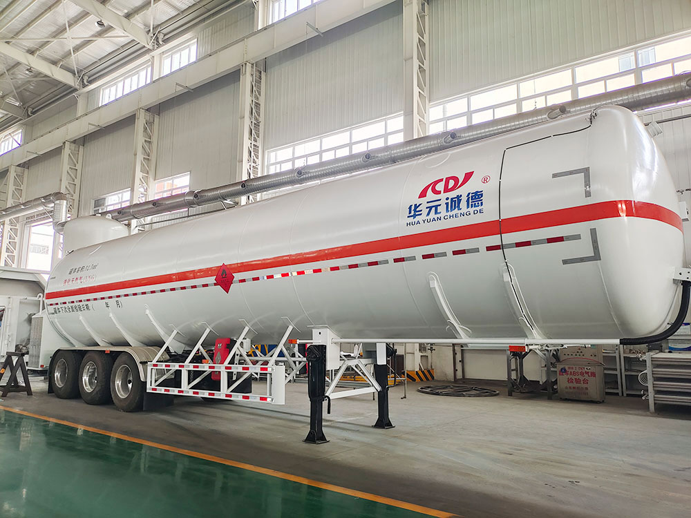 低溫液體運(yùn)輸半掛車是指承受壓力的運(yùn)輸半掛車輛,可用來(lái)裝運(yùn)各種低溫深冷液體,罐體結(jié)構(gòu)為雙層型式。車輛是由罐體和底架兩大部件所組成,罐體為臥式筒體結(jié)構(gòu),內(nèi)部裝有防波板,可減少液體運(yùn)輸過(guò)程的慣性力。一般儲(chǔ)運(yùn)的介質(zhì)是臨界溫度較低的低溫深冷液體,如液氧、液氮、液氬、LNG、液乙烯、液乙烷等。